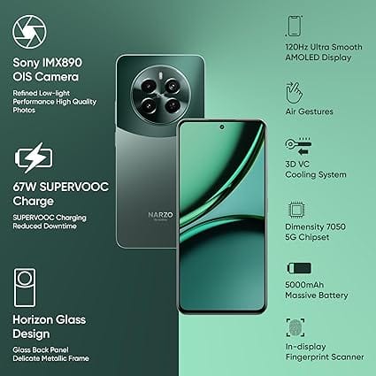 The Realme Narzo 70 Pro 5G is designed for students who want everything balanced—camera, performance, charging, and design.